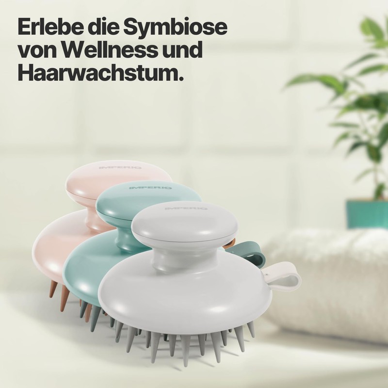 IMPERIO Kopfhaut Massagebürste zur Anregung des Haarwachstums - Premium Scalp Massager für durchblutungsfördernde Kopfmassage - Anwendung im trockenen & nassem Haar (Hellgrau)