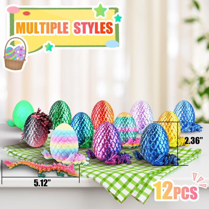 - [Unique Design] This 12-piece set of 3D-printed dragons with eggs features intricate details such as realistic scales and articulated joints. Each dragon is uniquely designed, making them captivating additions to any collection or decor.