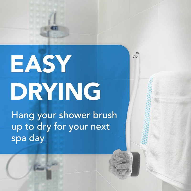 - Secado fácil: después de un remojo rejuvenecedor, cuelgue el cepillo de ducha para que se seque. El orificio redondo en el mango de su escobilla de ducha con mango largo proporciona una solución de almacenamiento eficaz, para que siempre esté listo para su próximo día de spa.