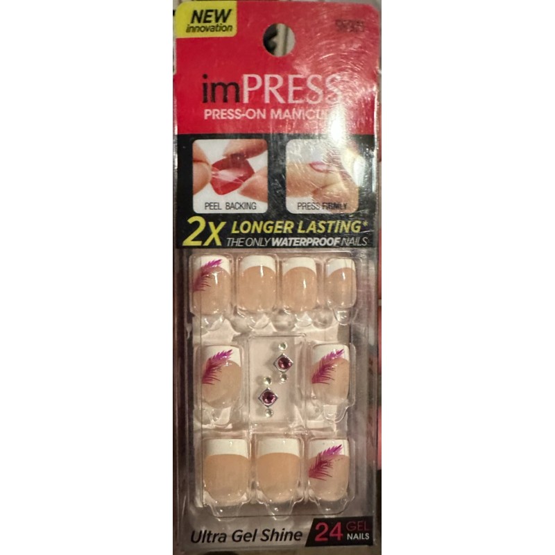 Impress! Impress Gel Manicure Press on Nails Short French Tip pink feather dots charm