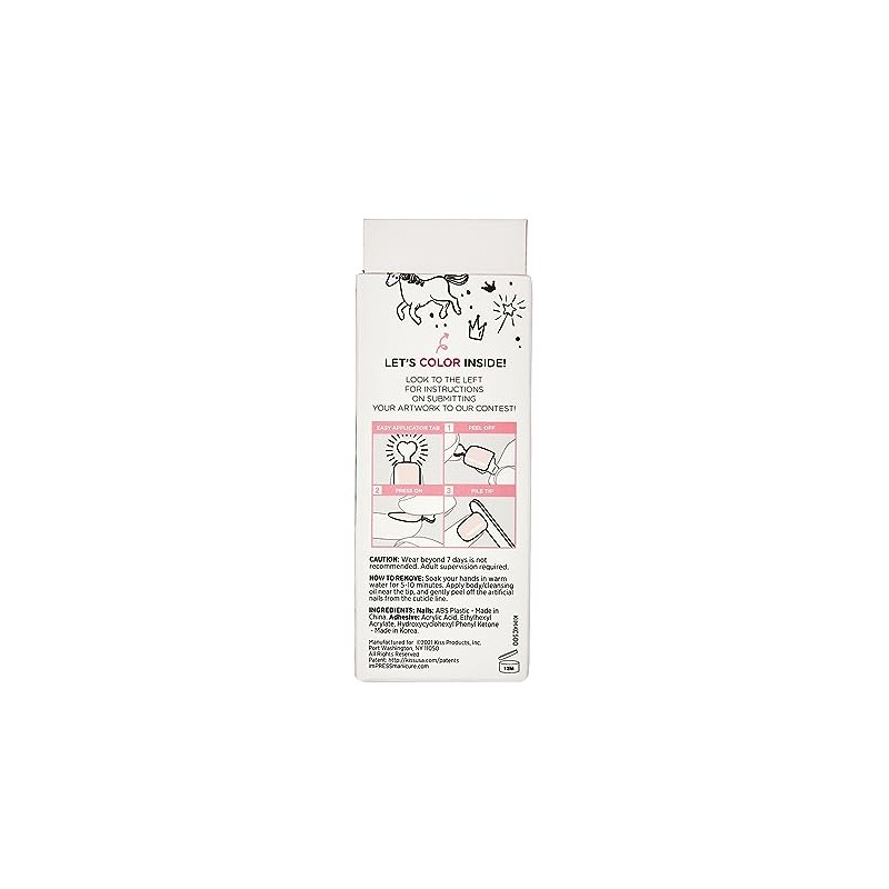 KISS imPRESS Mini Press-On Nails Mom-Approved Fake Nails for Kids is the perfect beginner manicure for little ones. For both beauty and play, these mom-approved fake nails are super comfortable and won't damage your child's natural nails. Surely you want the safest manicure option for little girls and tweens, free of the dangerous ingredients found in conventional nail polish. Well, here it is! This user-friendly starter nail kit contains everything you need for your child's first at-home DIY manicure. imPRESS Mini nails make a great gift, stocking stuffer, party favor, or fun activity!