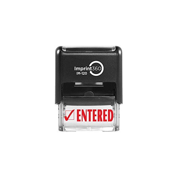 Imprint 360 AS-IMP1021 - Entered w/Check Mark, Heavy Duty Commerical Quality Self-Inking Rubber Stamp, Red Ink, 9/16" x 1-1/2" Impression Size, Laser Engraved for Clean, Precise Imprints