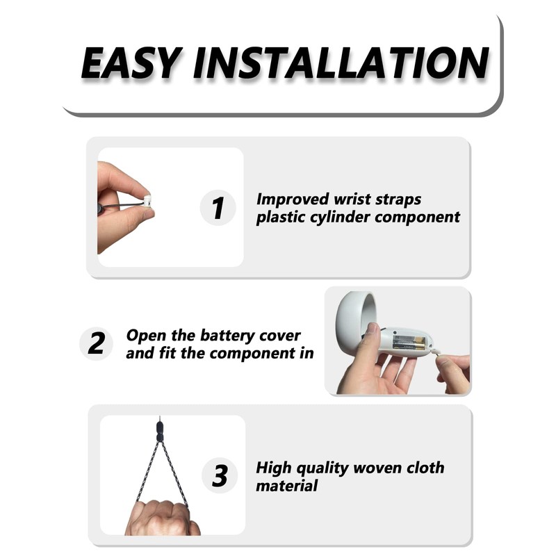 - 🌞Easy to Install and Use-You can quickly and easily attach and detach the wrist strap from the controller. It is easy to install by simply inserting the white resin cylinder part of the wristband into the slot of the Oculus controller, without any additional tools.