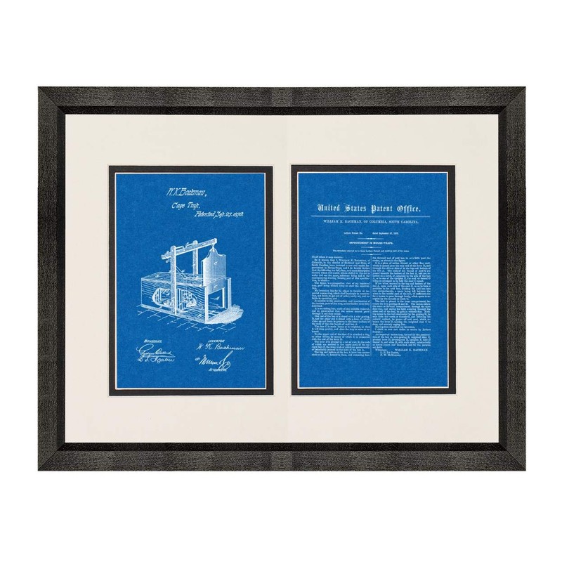 Improvement In Mouse-traps Patent Art Blueprint Print in a Beveled Black Wood Frame with a Double Mat (16" x 20") M11877