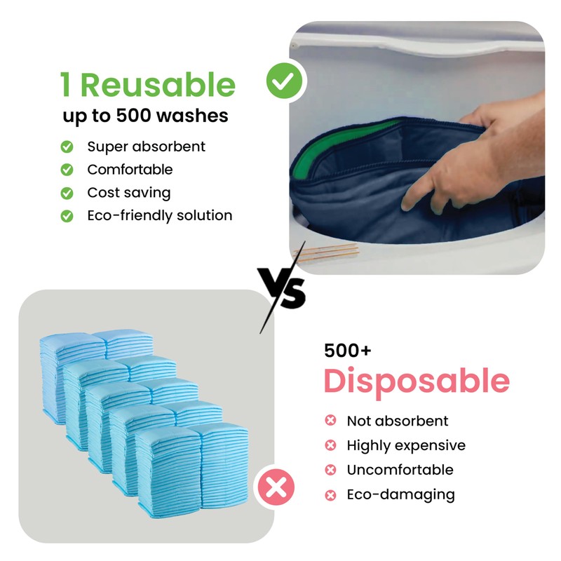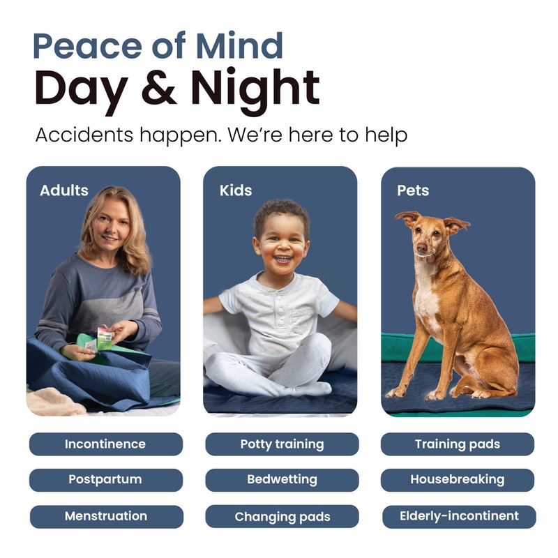 IMPROVIA® Washable Underpads 34" x 36" Pack of 4 Heavy Absorbency Reusable Bedwetting Incontinence Pads for Adults, Kids, & Pets - Waterproof Protective Pad for Bed, Couch, Sofa, Floor (Navy & Green)