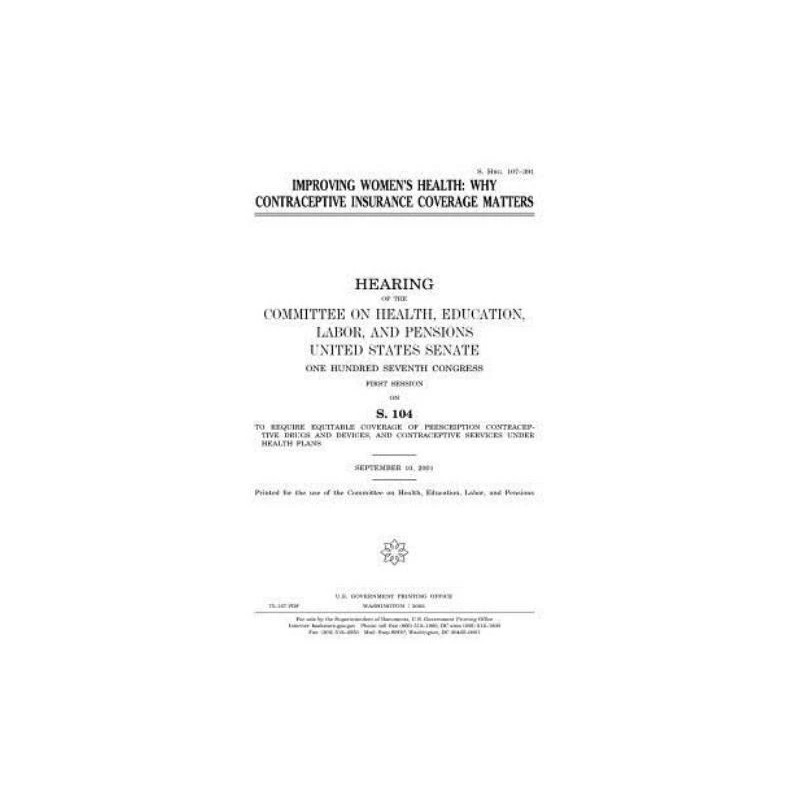 Description:(This is a RePrint) - Improving Women's Health: Why Contraceptive Insurance Coverage Matters: Hearing Before The Committee On Health, Education, Labor, And Pensions United States Senate, One Hundred Seventh Congress, First Session On S 104 To Require Equitable Coverage Of Prescription Contraceptive Drugs And Devices, And Contraceptive Services Under Health Plans