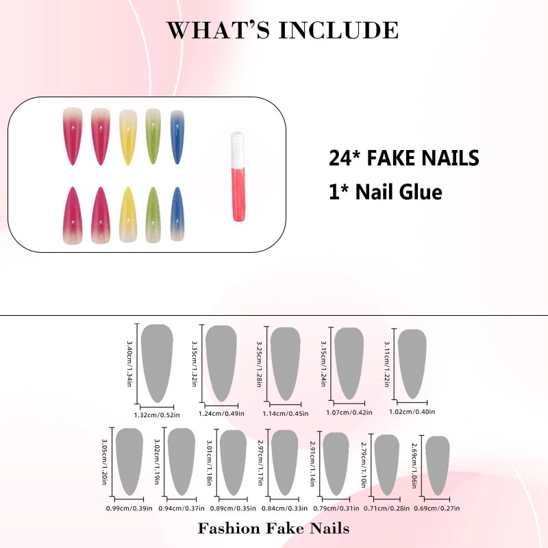 Imrain Colorful Ombre Press on Nails Long Stiletto Fake Nails Y-20Colorful Gradient