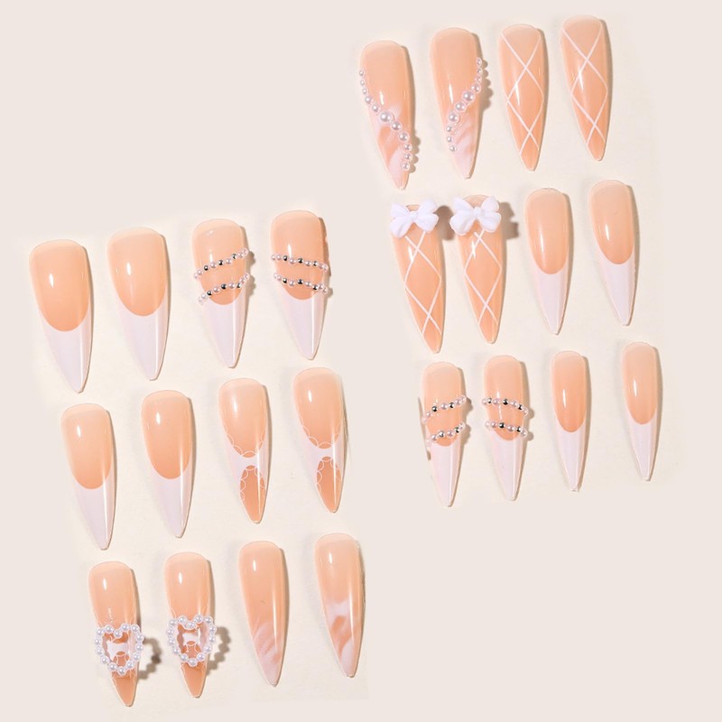 - [Quality Material] These white bow & pearl press on nails are made of quality acrylic material, gentle to your nails and skin, not easy to be scratched, will give you a nice manicure experience.