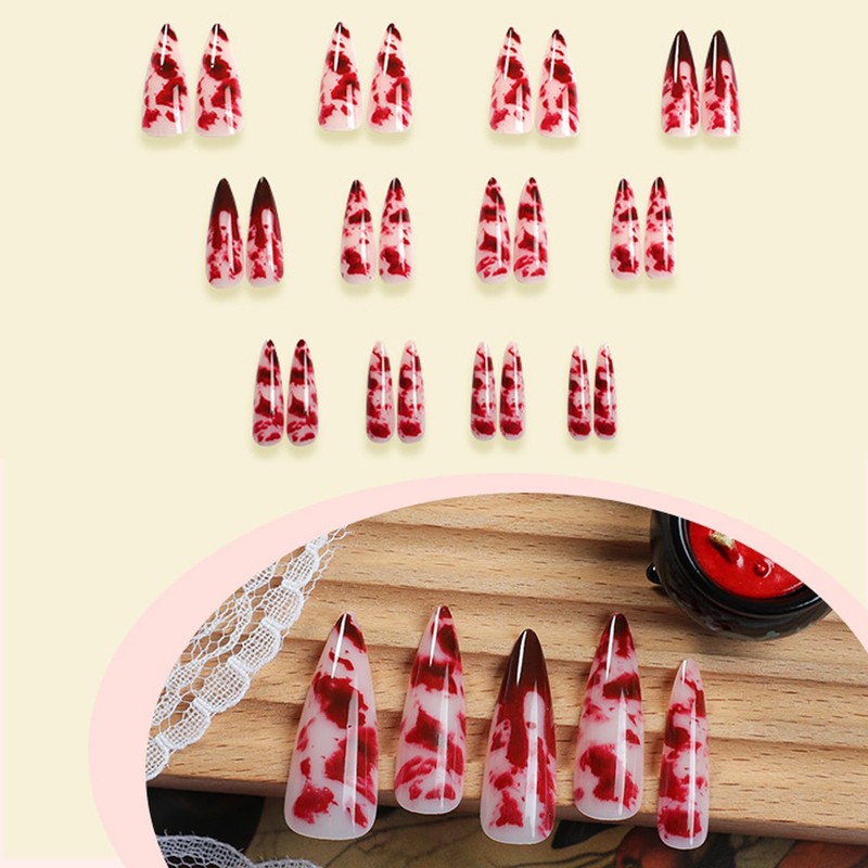 - [Quality Material] Thesered blood ombre press on nails are made of quality acrylic material, gentle to your nails and skin, not easy to be scratched, will give you a nice manicure experience.