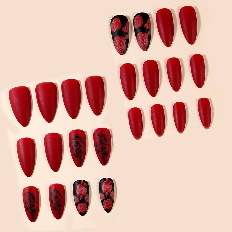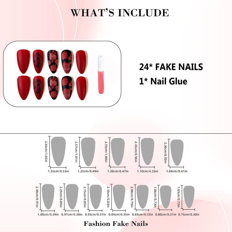 - [Quality Material] These matte wine red rose press on nails are made of quality acrylic material, gentle to your nails and skin, not easy to be scratched, will give you a nice manicure experience.