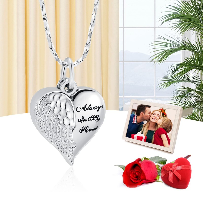 Imrsanl Cremation Jewelry for Ashes Heart Urn Necklace Pendants Ashes for Women Men Family Keepsake Memorial Angel Wing with Charm Heart for Loved Ones (Silver-Grandpa)