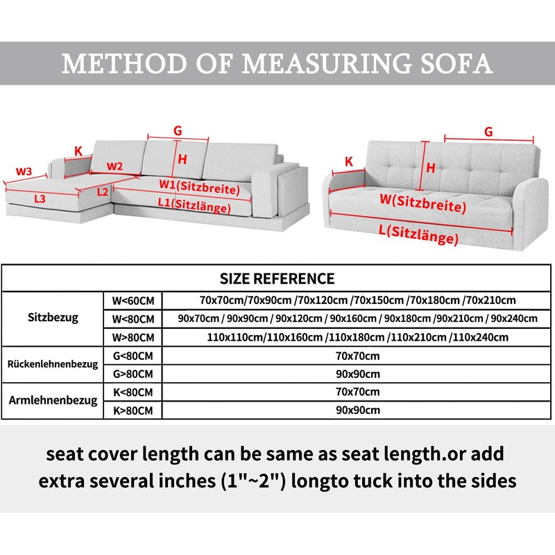 - Tips: Please measure your sofa before purchasing, the size of the sofa throw usually larger than the size of the sofa to keep the sofa cover in the back and front of the couch more in place. Any problems with the size selection and quality, please feel free to contact us. Our goal is for you to be happy.