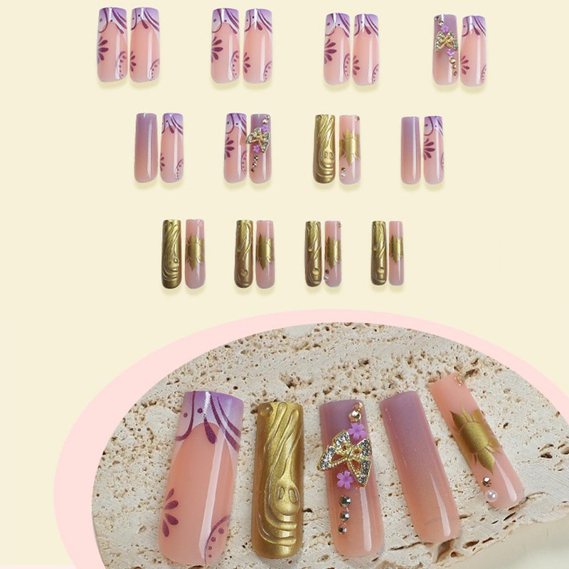 - [Quality Material] These purple golden butterfly press on nails are made of quality acrylic material, gentle to your nails and skin, not easy to be scratched, will give you a nice manicure experience.