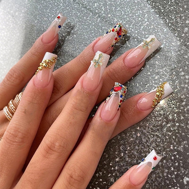 • [Quality Material] These colorful diamonds press on nails are made of quality acrylic material, gentle to your nails and skin, not easy to be scratched, will give you a nice manicure experience.