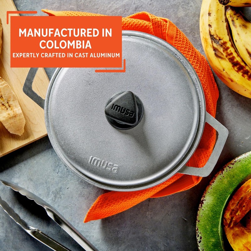 IMUSA 2.6 Quart Traditional Natural Made in Colombia Caldero with Lid for Cooking and Serving, Silver