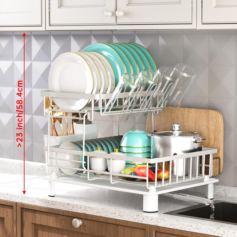 - Considerate Detachable 2-Tier Design: The two tier dish drying rack features a detachable top-shelf design with ample capacity for easy storage. The upper part can also be separated and used independently, allowing you to conveniently adjust it to fit the cabinet height. This design offers great mobility and convenience
