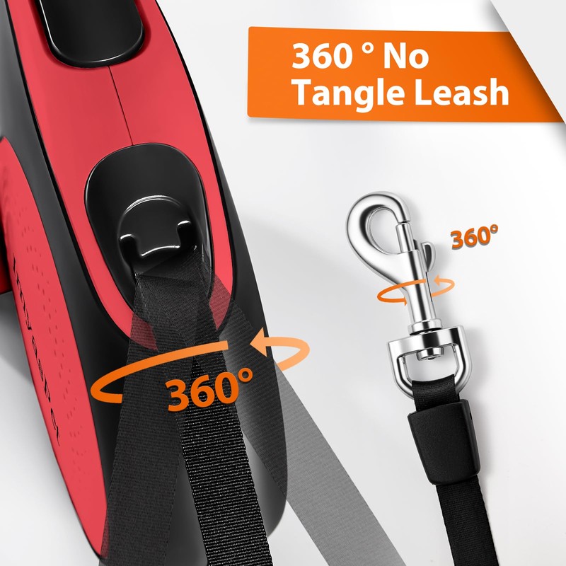 - 【Heavy Duty with Best Comfort】Our dog retractable leash does not have any defects in technology and quality. 360° No Tangle allows you to control your dog from any Angle. This strong 16ft super-length dog leash can carry your dog up to 110 lbs and gives your pet more free space, suits for medium and large dogs.