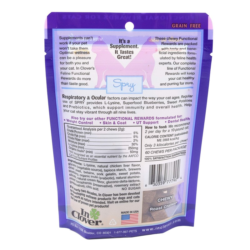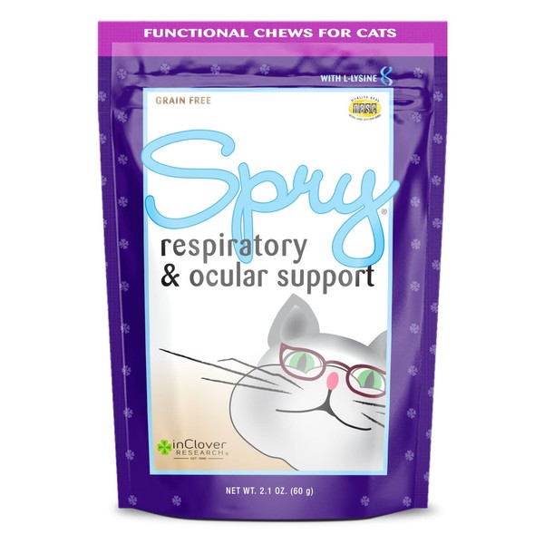 In Clover Spry Daily Respiratory and Ocular Support Soft Chews for Cats, with L-Lysine, Superfoods, and Prebiotics for a Strong Immune System, 2.1 oz. (60 count)