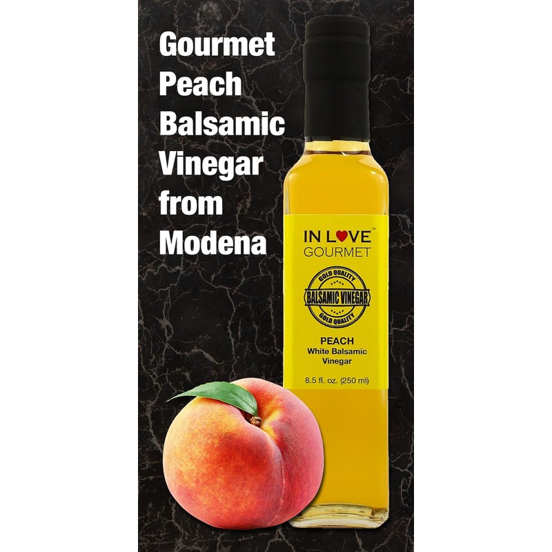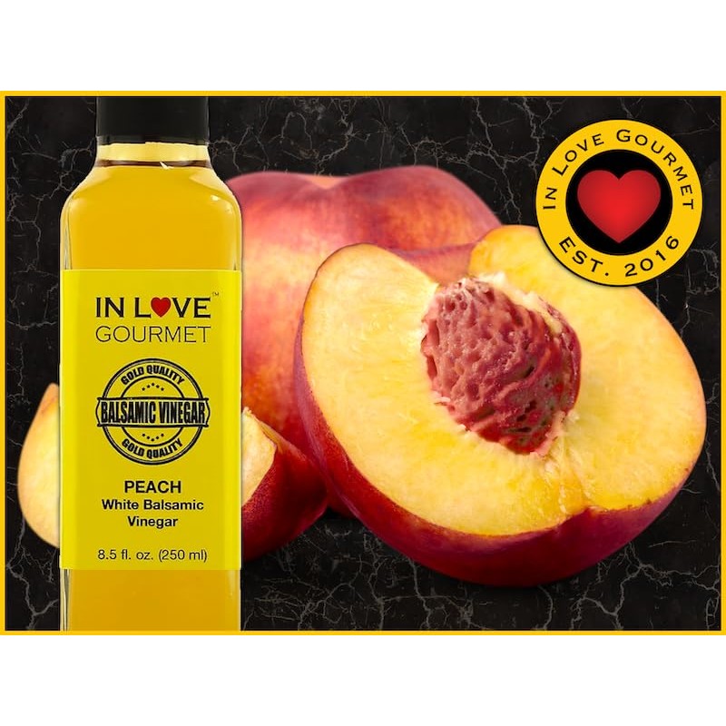 In Love Gourmet Peach White Balsamic Vinegar 250ML/8.5oz Great on Red Meats and Game Meats, Drizzle on Veggie and Fruit Salads