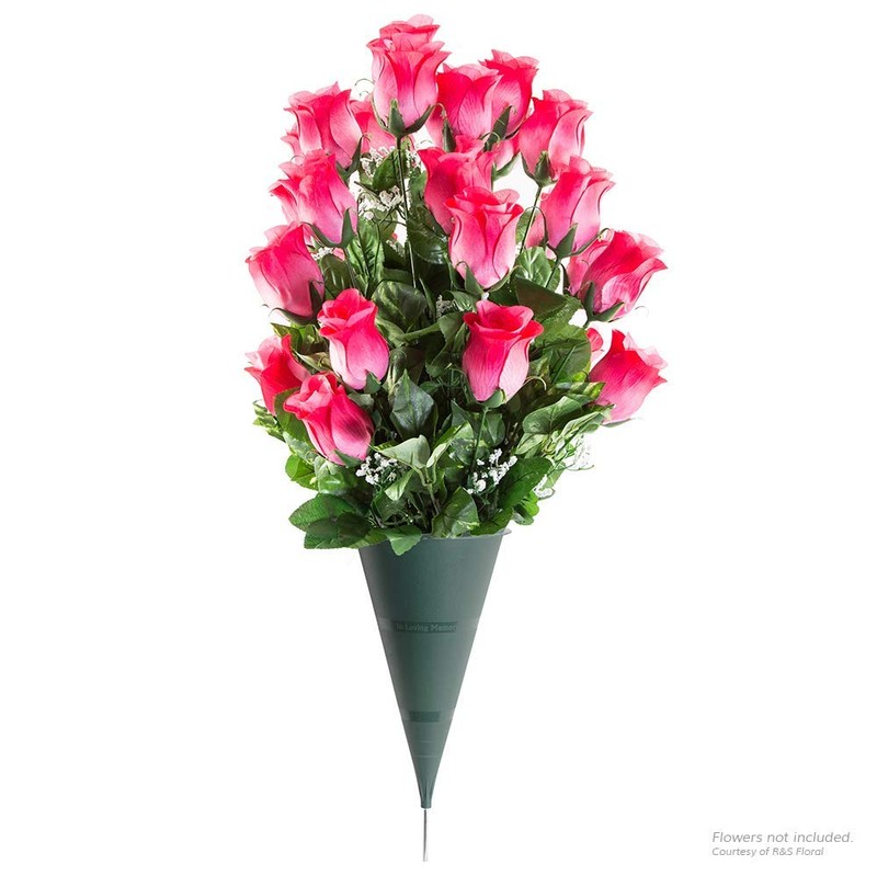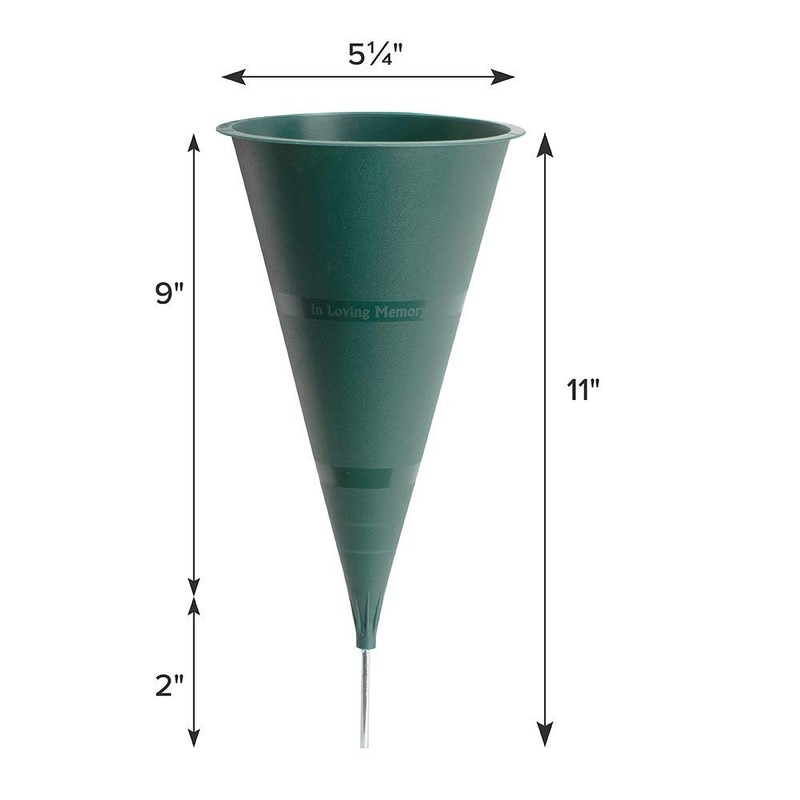 • In Loving Memory, Green Cone Plastic Memorial Vase for Holding Beautiful Graveside Arrangements