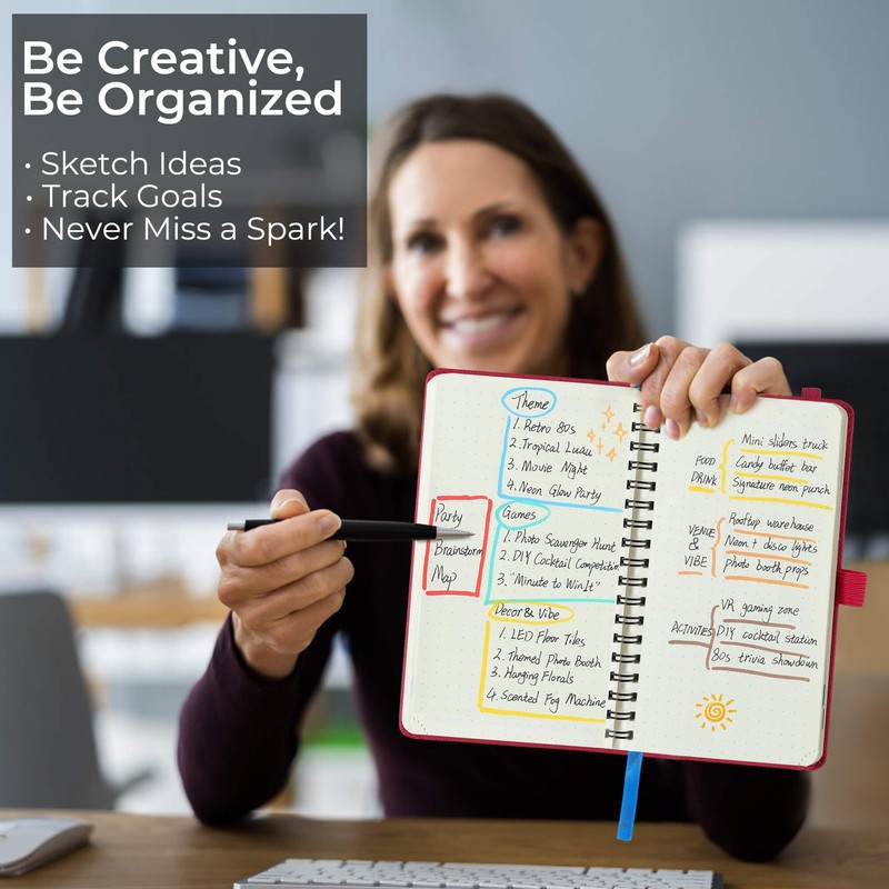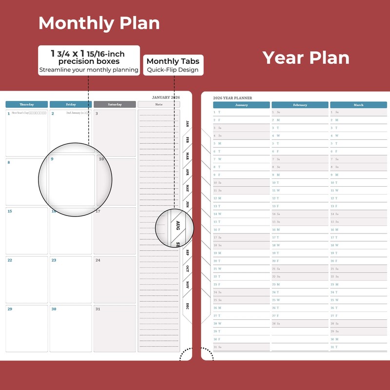 - [Thoughtful Details] - Premium diary planner includes features like ribbon bookmarks, month tab pages, a self-adhesive pen holder, and an extendable inner pocket on the back for small items—combining practicality with understated sophistication