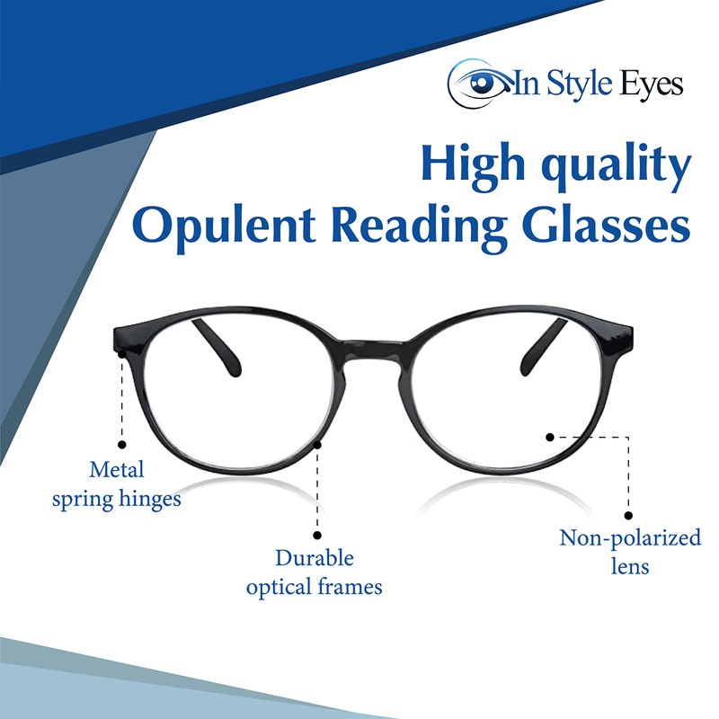 - Classic reading glasses - In Style Eyes' Opulent Reading Glasses provide full coverage, so readers can see not only what's right in front of them, but to each side, top and bottom. Lenses are fixed in the frames, providing secure, reliable support.