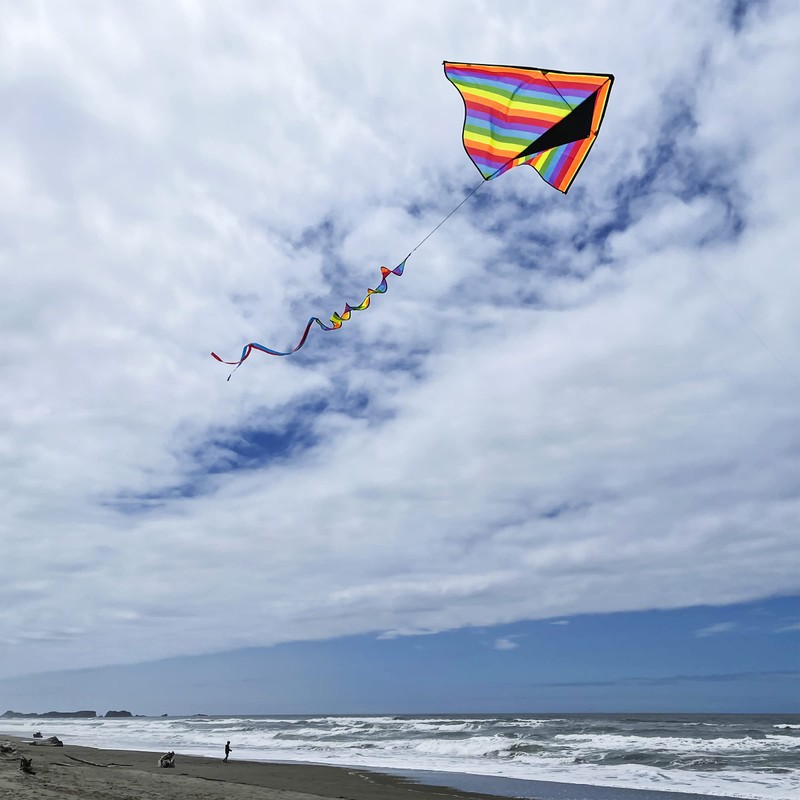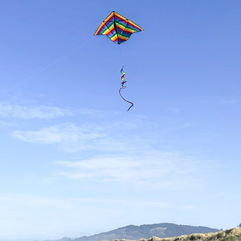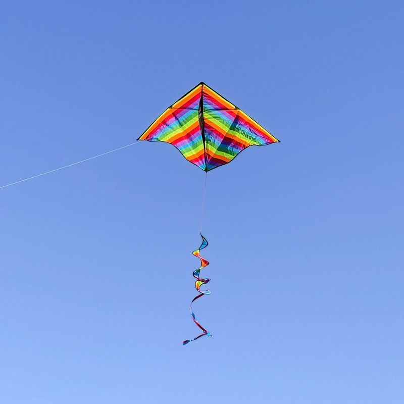 • In the Breeze Item #3329 — 72" Rainbow Stripe Delta Kite with Spinning Tail is EASY to fly and would be an awesome addition to your next OUTDOOR ADVENTURE!