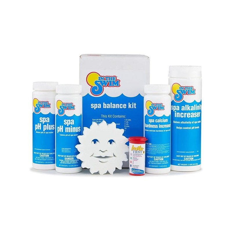 In The Swim Spa Starter Kit - Hot Tub Water Balance Kit: Includes pH Plus & Minus, Calcium Hardness Increaser, Alkalinity Increaser, Water Test Strips, and Spa Sorb