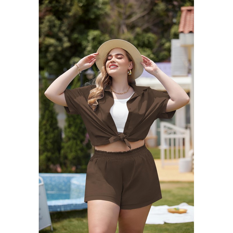 - Simple&Stylish Design: Plus size linen shorts set is loose fit style, fits oversized body shapes. Short sleeve button down shirt features round hem and turn down collar while high elastic waist shorts feature side slash pockets and wide leg. Women oversized tracksuits can create a summer look of both elegant and comfort for you.