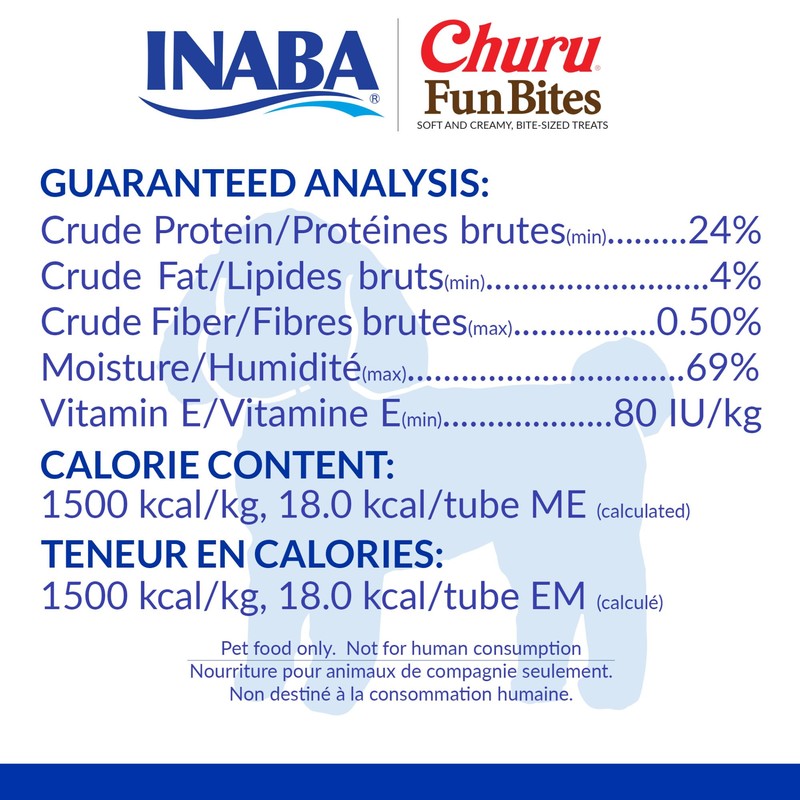 - TWICE THE TEXTURE: Each pillow-shaped bite starts with a soft baked chicken paste wrap with no grains, preservatives, carrageenan or artificial colors. Then we've filled the centers with Inaba's delicious Churu filling to give your dog twice the texture