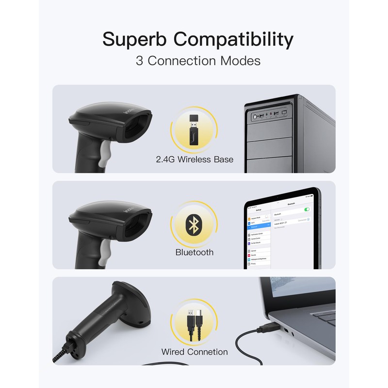 • Excellent compatibility: This Bluetooth scanner is equipped with three connection methods: 2.4G wireless, Bluetooth and USB cable, and it is compatible with Windows, Mac OS, iOS, Android, iPad OS and Linux, covering your barcode scanning needs in different scenarios. Compatible operating systems are Windows, Android, Mac OS/iOS; and platforms include Ionic React, React Native, and more