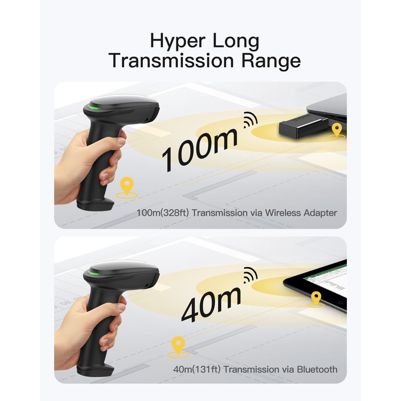 • Extremely durable: Inateck Hyper Series barcode scanner wireless, supported by advanced battery algorithms, are characterised by low power consumption for maximum battery life. With normal scan frequency, a battery charge lasts 3 months, and with intensive use, a battery charge lasts 1 month, eliminating worry about battery life