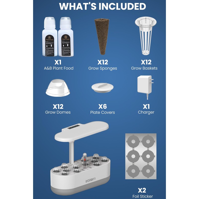 inBloom 12 Pods Hydroponics Growing System Indoor Garden with LED Grow Light and Pod Kit, Plants Germination Kit with 4.2L Water Pump Accelerate, Height Adjustable, Gardening Gifts for Women, White