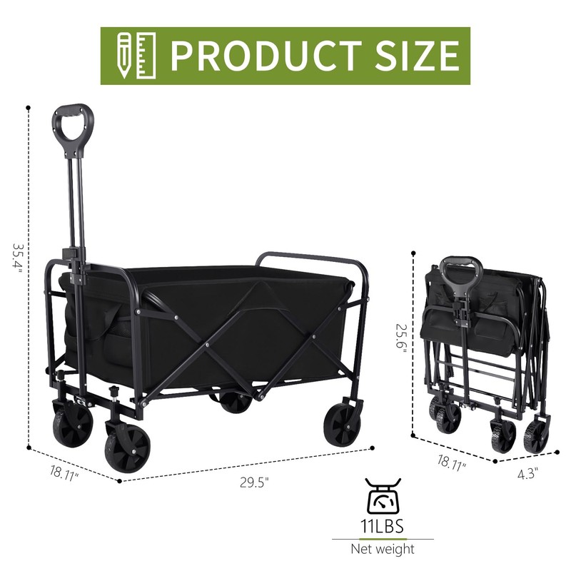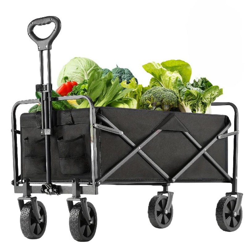 Inbrave Foldable Wagons Carts Collapsible with All-Terrain Wheels - 360 LBS Heavy Duty Grocery Utility Cart for Camping, Sports, Beach, Shopping (Black)