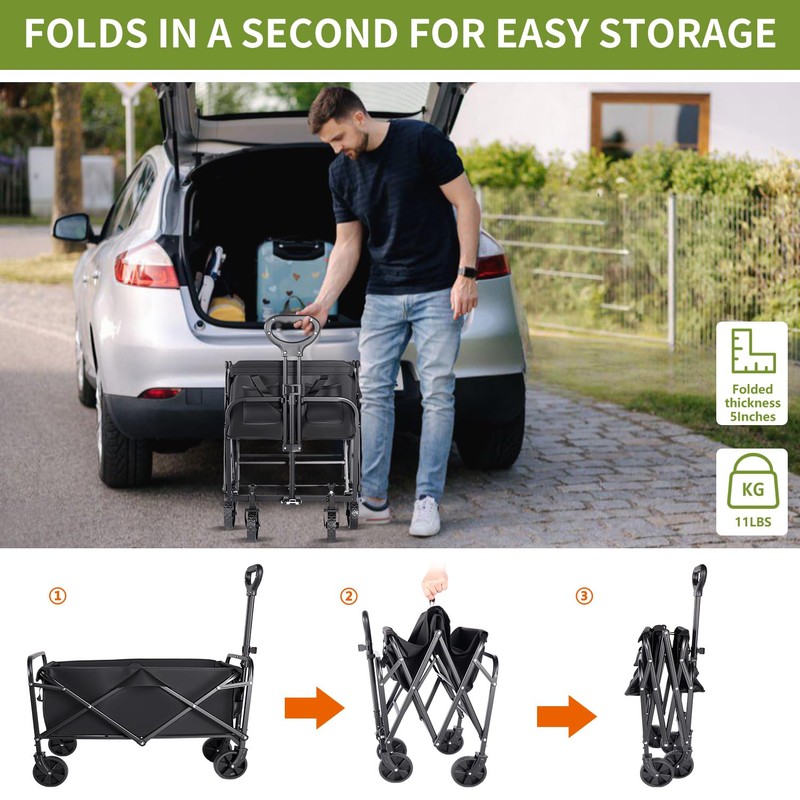 - 3-Second Compact Fold: Patented design folds flat, shrinking over 80%. Stores vertically in your car trunk—no tools needed