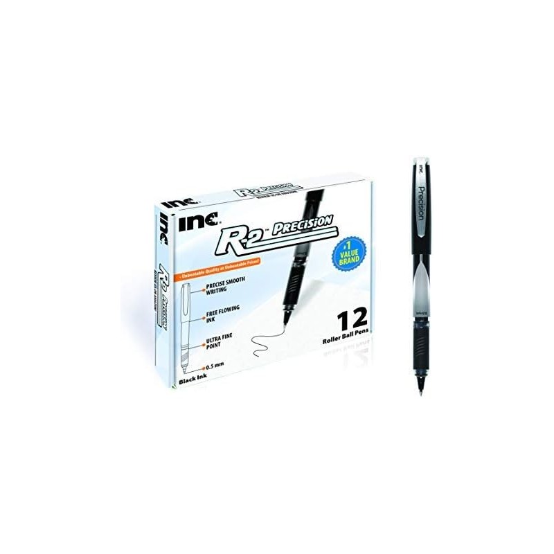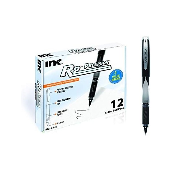 Inc. R2 Precision Rollerball Pens - 0.5 mm Ultra Fine-Point Pen Set With Comfort Grip for School, Office, Writing, and Journaling, 12 Pack, Black Ink