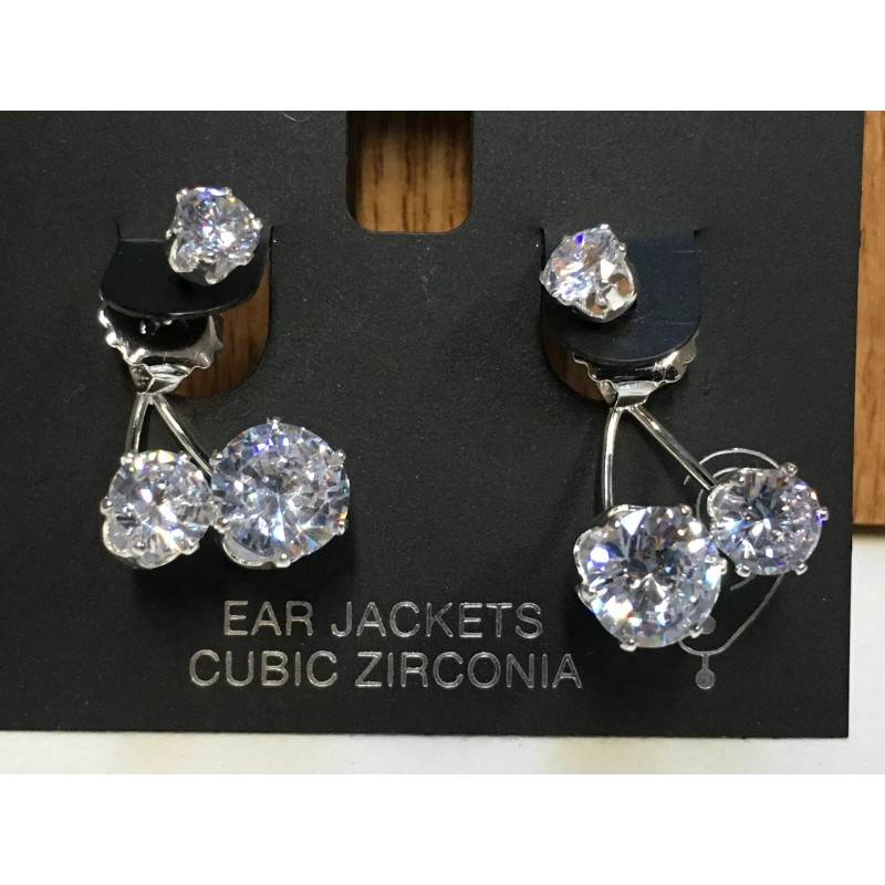 INC International Concepts I.N.C Ear Jackets Sparkles White CZ Stud Silver Plated Earrings 3/4" *R87