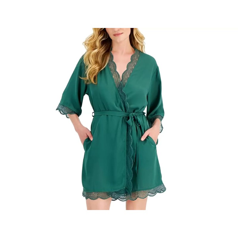 Inc International Concepts Lace Trim Short Robe, Smoke Pine, Small