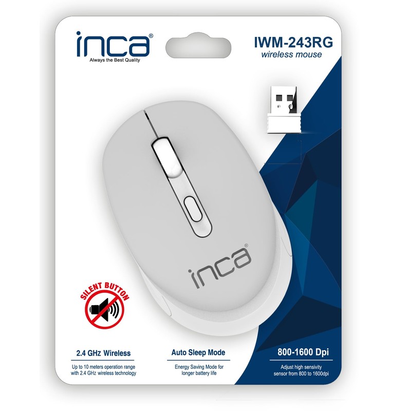 INCA IWM-243RG Candy Design Wireless Mouse, 2.4GHz Wireless, Auto Sleep Mode, 800-1600 DPI (Grey)