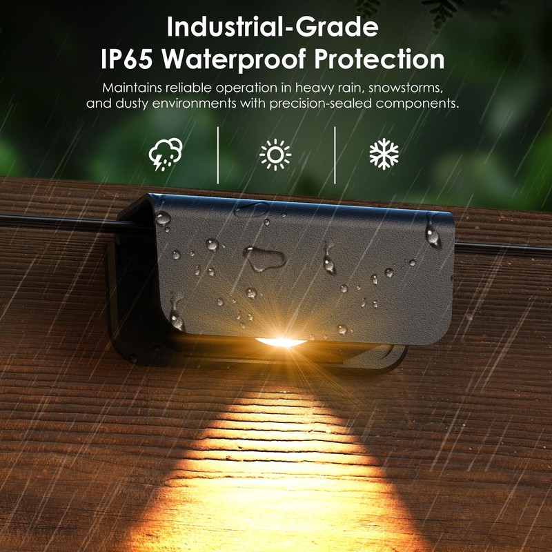 - 【 Waterproof & Durable Step Lights】No need to worry about outdoor lighting again! Our outdoor deck lights are built to last, featuring durable, weather-resistant materials that withstand harsh outdoor conditions, including heavy rain, snow, frost, and extreme temperatures, making them perfect for outdoor use in any season or climate, ensuring long-lasting performance in any outdoor condition.