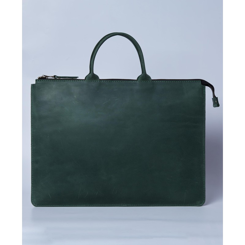 Introducing the INCARNE Maryland MacBook Air Bag With Handles - MacBook Air 15 inch Case Sleeve – A stylish and functional leather sleeve compatible with MacBook Air 15" M2. This green leather bag offers superior protection and a sophisticated look, making it perfect for your MacBook Air.