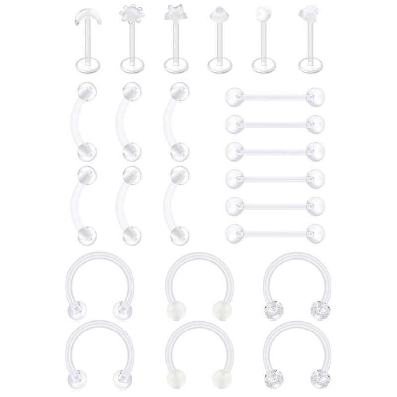- [Total 24pcs] * 24 Pieces Set of Multifunctional Transparent Flexible Retainers. Hide Your Piercing.
