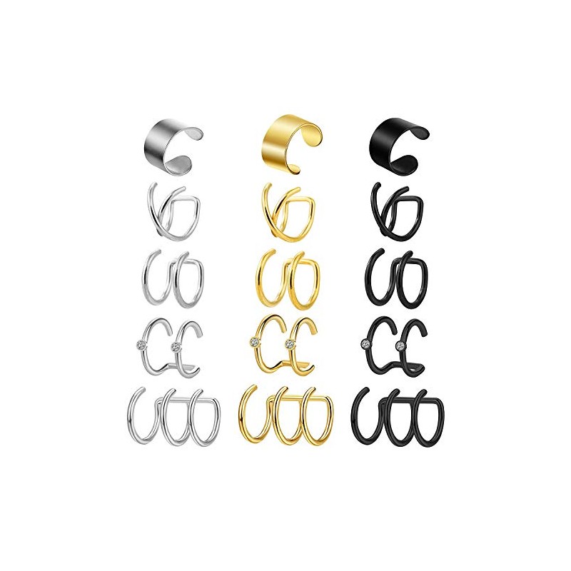 - Package including -- 15pcs stainless steel ear cuffs (5 styles and 3 colors), unique and various, meet all your matching needs and fit for all kinds of outfits