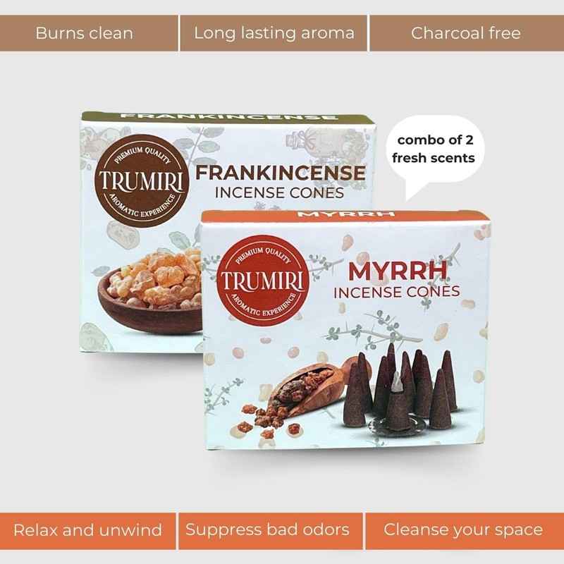 Incense Cones - Combo Pack of 20 Cone Incense - 10 Frankincense + 10 Myrrh - Insence Cones - Incense Cones Scented - Cone Incense Scents - Insense Cones - Incent Cone
