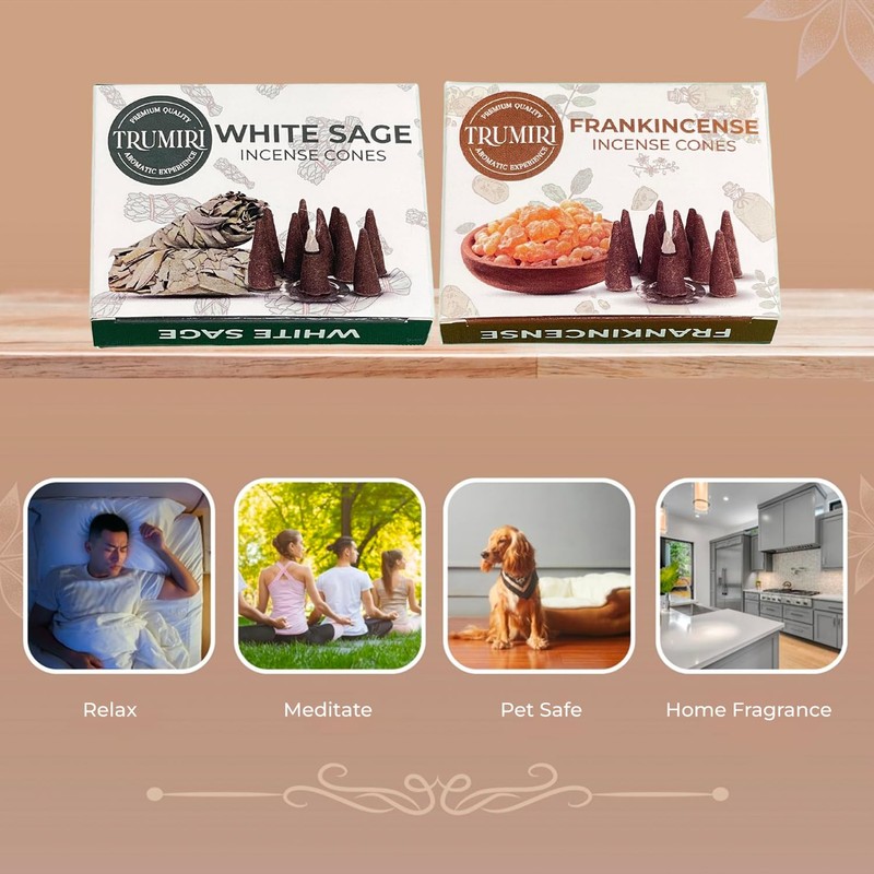 - Experience the joy of exploring different aromas of insencent cones, from the traditional White Sage to the mystical Frankincense. Our insencens cones assist in setting the perfect mood for any occasion.