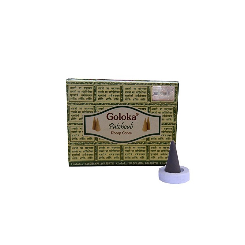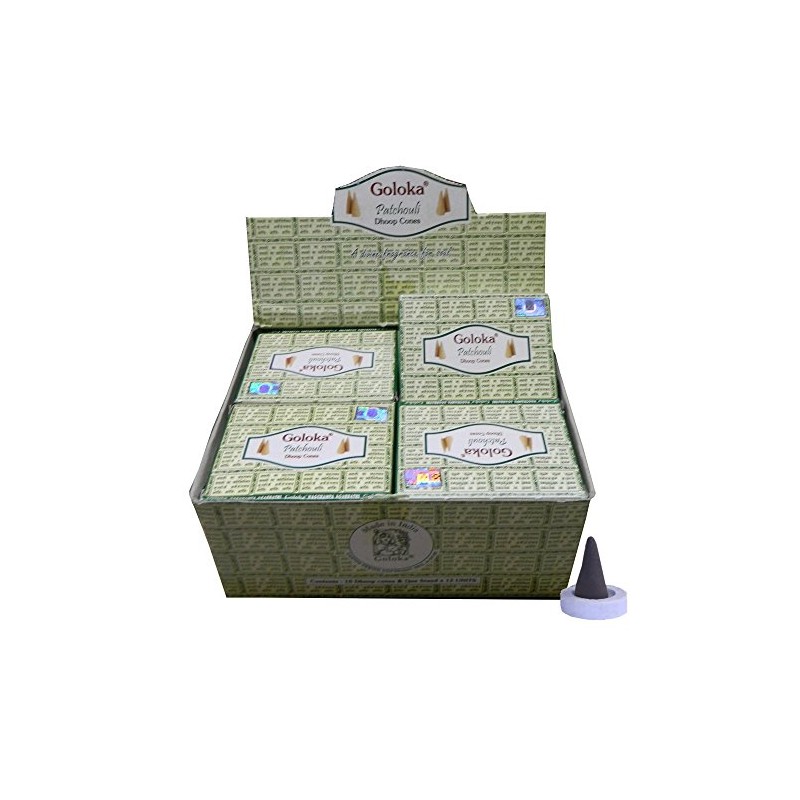 Incense Cones Goloka Patchouli Dhoop Cones 12 Boxes 120 Cones with Holder Fragrance Aroma Bulk Pack Supply