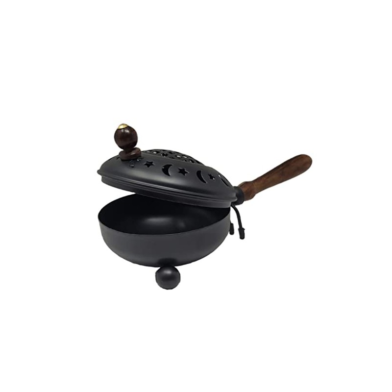 The smoking pan works simply: you add rager sand and charcoal into the pan, the incense is then scattered over it. Thanks to the lid, the air can circulate and the smell can be optimally distributed throughout the room. If the solid pan is not heated, it looks great as a decorative piece. To enjoy the smoking pan for a long time, you should protect it from moisture.