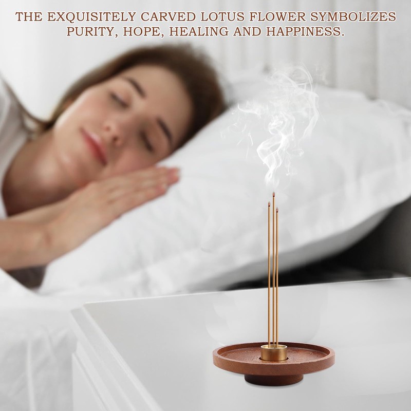 - Lotus design: the exquisitely carved lotus flower symbolises purity, hope, healing and happiness. The elegant appearance of the wooden lotus incense holder will enrich the artistic ambience of your room and calmly relax and meditate peacefully.