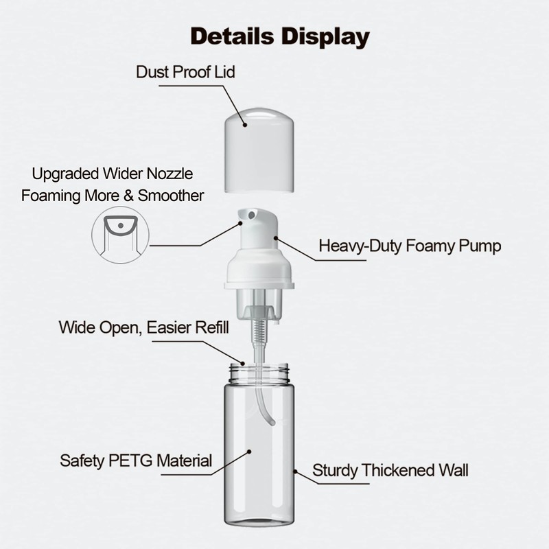 - 【Premium Material】 These travel size mini foaming pump bottles are made of high quality BPA-Free PETG plastic, which is safe, non-toxic and odorless, 100% eco-friendly.
