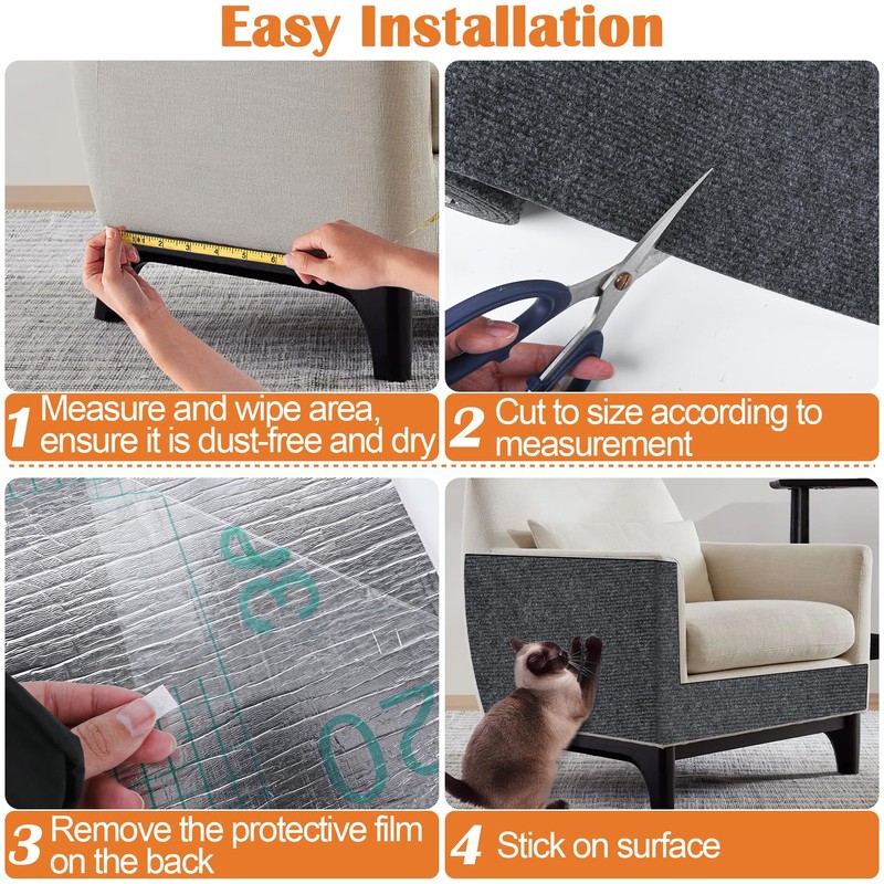 - 【Easy Installation】Installing the Inchoco Cat Scratching Pad is simple. Cut it to size, clean and dry the surface, peel off the back film, and securely adhere the pad in place. The pad is both removable and reusable without residue, allowing for easy repositioning. Whether on sofas or other cat - related furniture, the Inchoco Cat Scratching Pad is a convenient option for cat owners